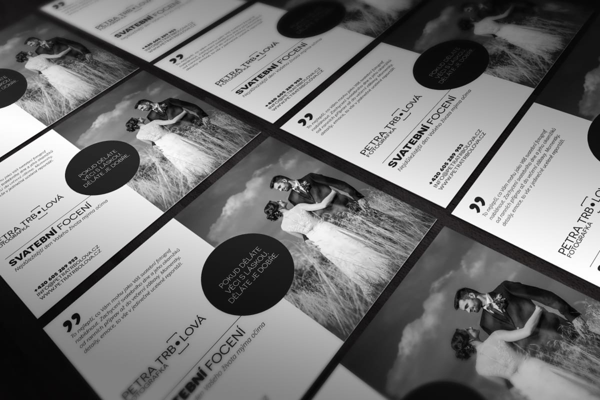Práce na grafických návrzích pro Petru Trbolovou pro nás znamená opravdu hodně. Fotografie od této profesionální fotografky mají nepopsatelnou hodnotu a je radostí se na ně dívat. Pro Petru jsme kromě loga vytvořili i vizitky, ceníky, letáčky, PF a další tiskoviny.